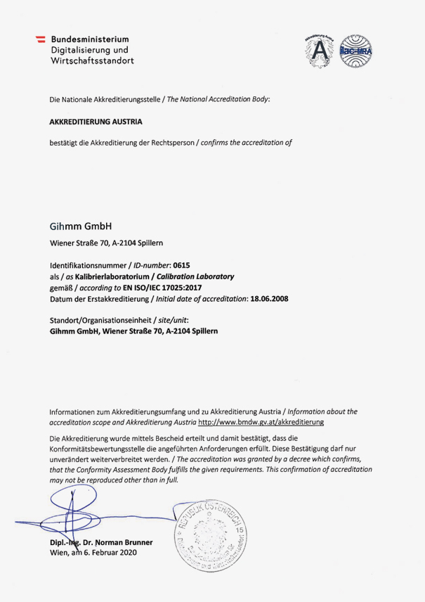 - behördlich und international anerkannte Kalibrierscheine – seit 2008 nach ISO17025 für die Messgröße Umgebungsäquivalentdosisleistung akkreditiert